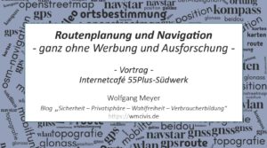Vortrag “Routenplanung und Navigation – ganz ohne Werbung und Ausforschung -” von Wolfgang Meyer